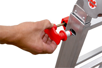 - Gewünschte Arbeitshöhe im Sprossenabstand einfach mittels robusten Rastergriffen einstellbar