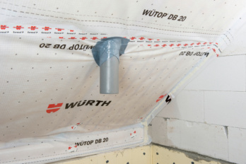 Utesňovanie otvorov cez stropné a strešné ochranné fólie, napr. na komíny alebo potrubia.