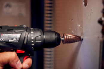 - Beim Aufbohren nicht drücken. Der Stufenbohrer zieht sich selbständig ins Blech.